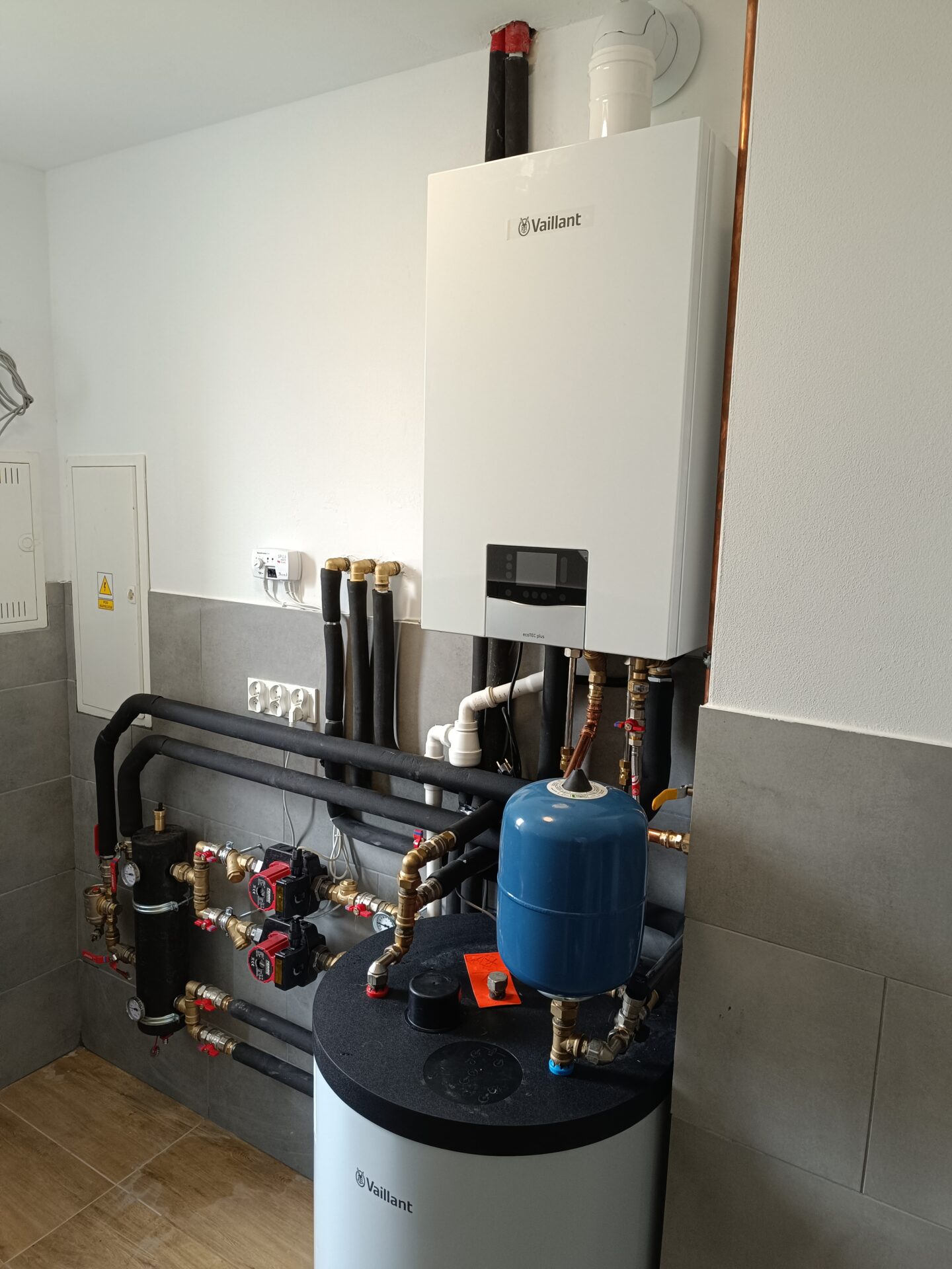 W nowym budynku w Sokołowie Małopolskim wykonaliśmy kotłownię gazową opartą na kotle Vaillant. Instalację uzupełniliśmy o zasobnik c.w.u. Vaillant oraz sprzęgło hydrauliczne dla instalacji c.o., tworząc nowoczesny i funkcjonalny układ grzewczy.