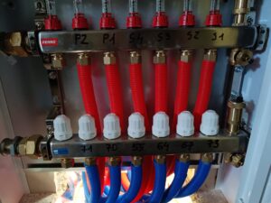 montaż rozdzielacza i obiegów grzewczych